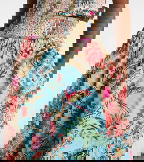 Autumn Floral-Embroidery Woven Maxi Skirt