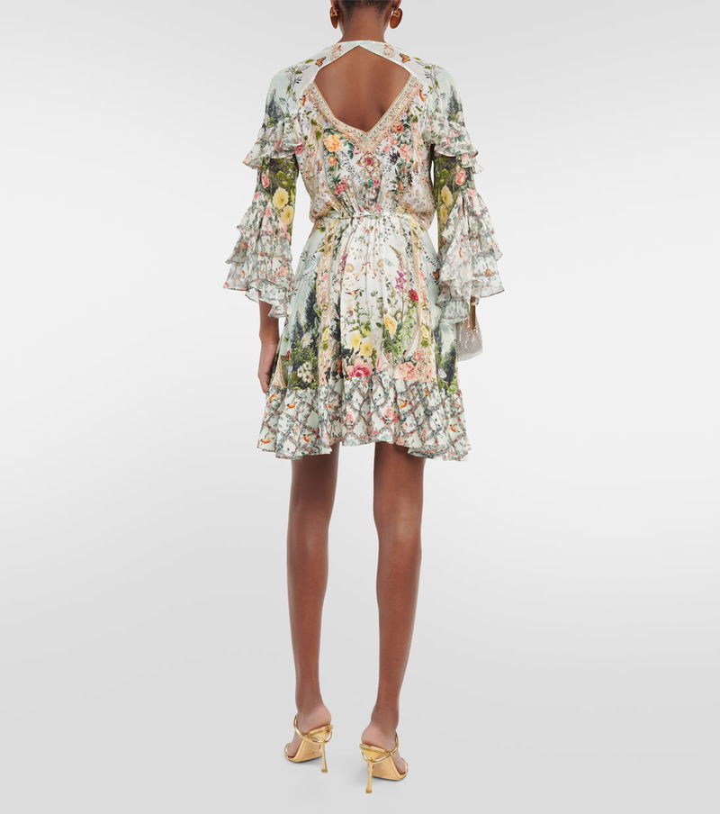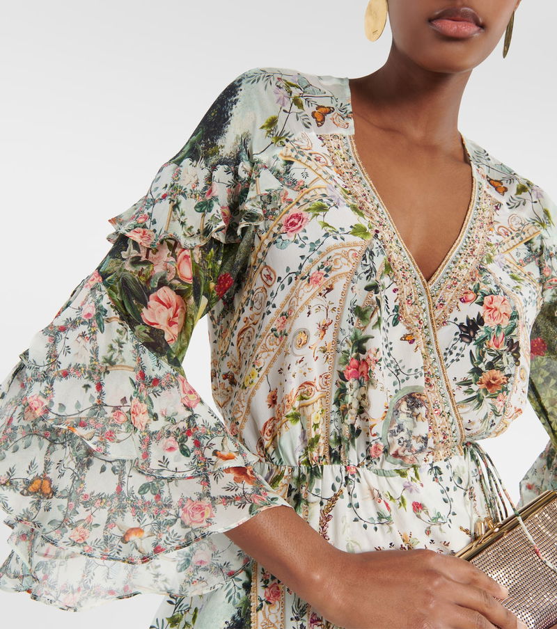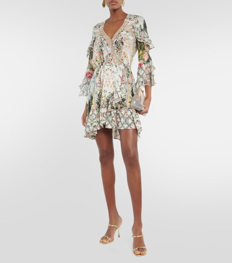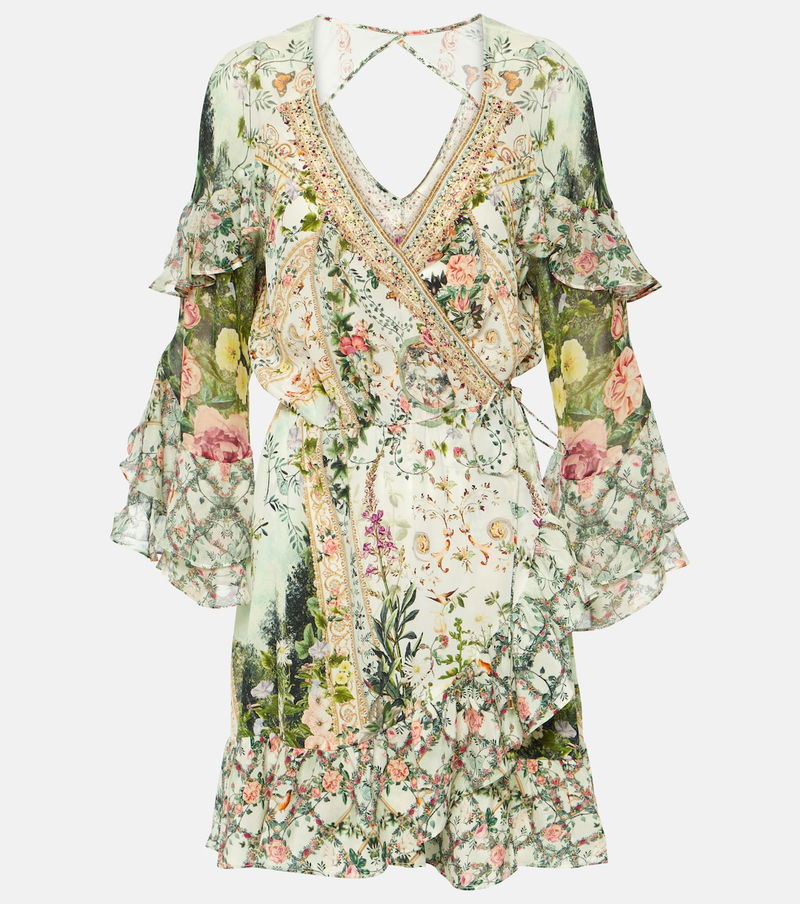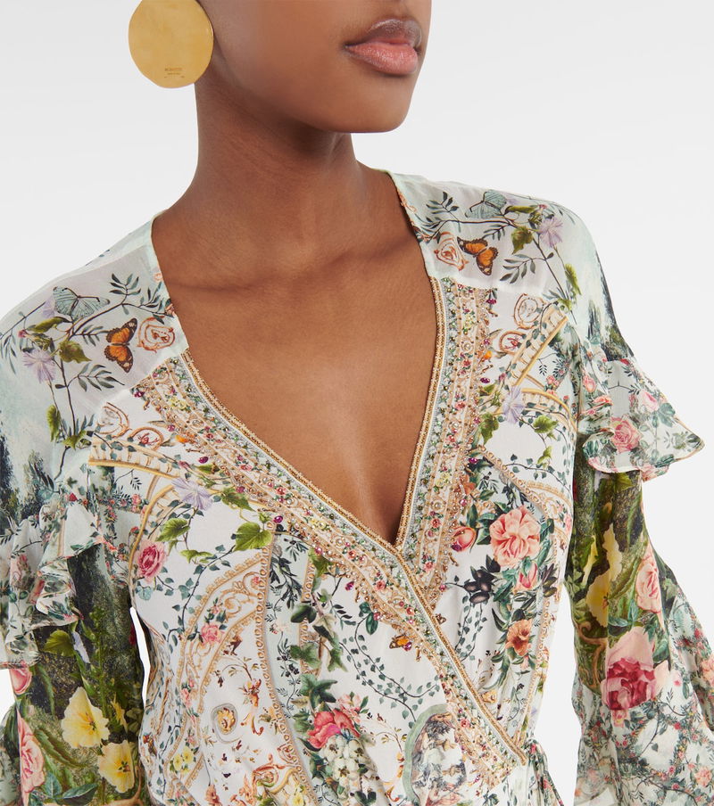 Ruffled Floral Silk Crêpe Wrap Dress.