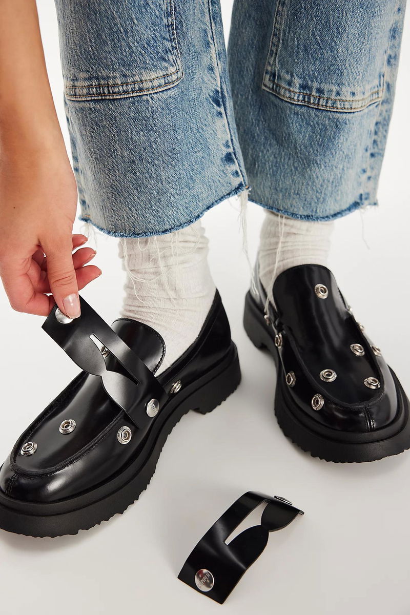 Born from Camper’s TWINS concept of opposite yet complementary shoes, this pair of loafers offers a convertible, playful twist on the classic office shoe, featuring sleek leather uppers and two penny straps that can attach in multiple ways.