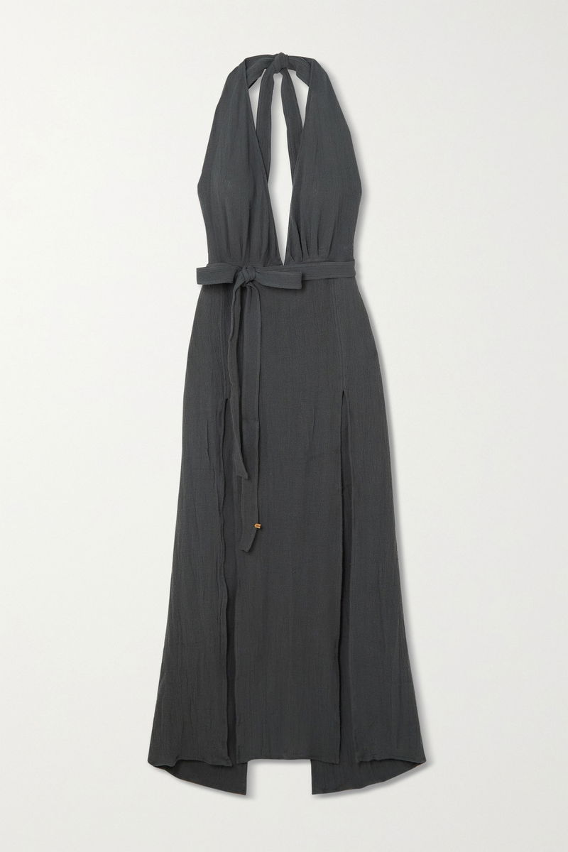 Caravana's designs are rooted in its Mexican heritage - each piece is handmade by local artisans in Valladolid using traditional Mayan techniques. This plunging 'Tacoh' dress is cut from breezy cotton-voile and has ties at the halter neckline. Pack yours for every sunny vacation.