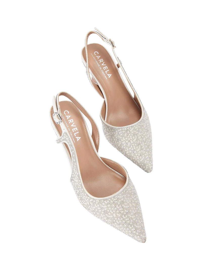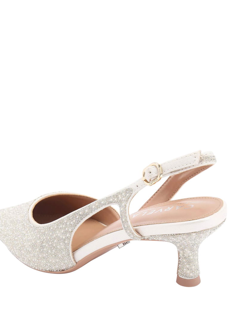 Alina Embellished Slingback Court Shoes, White