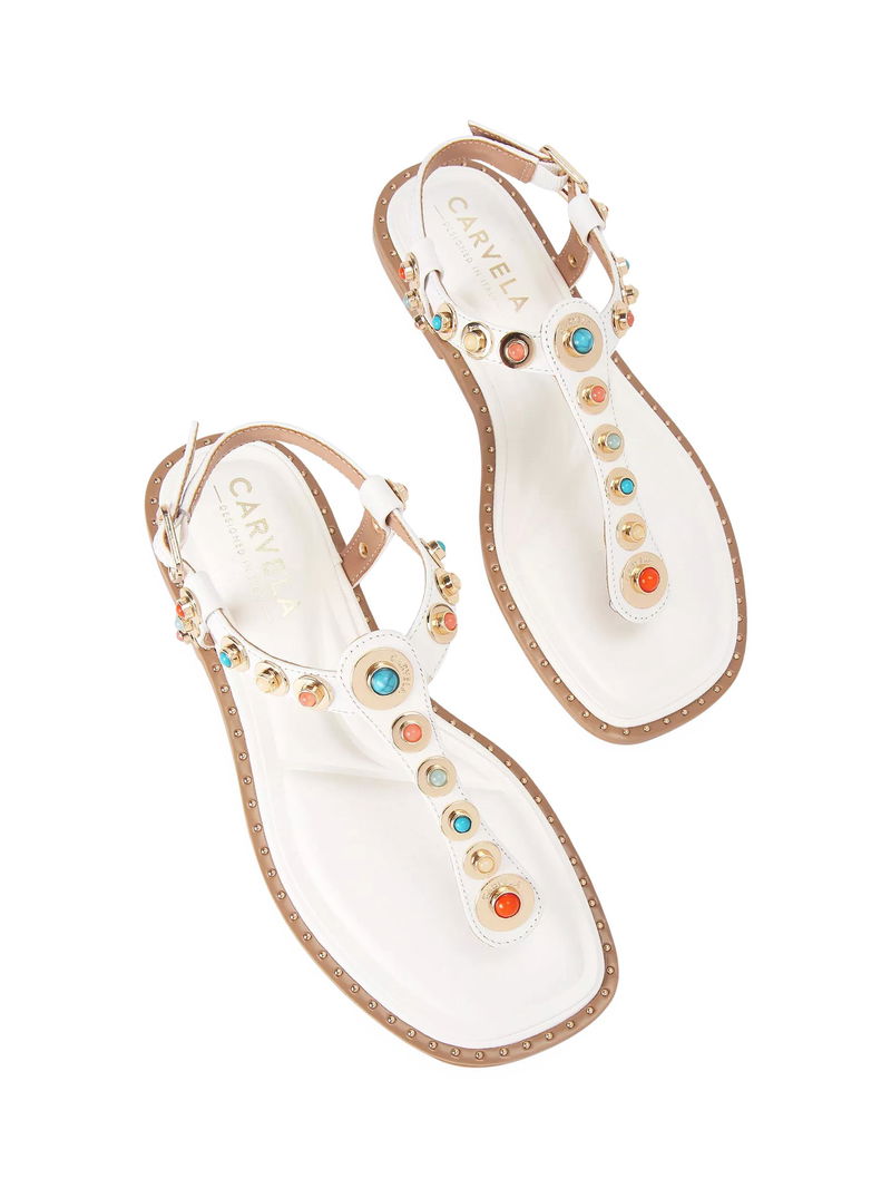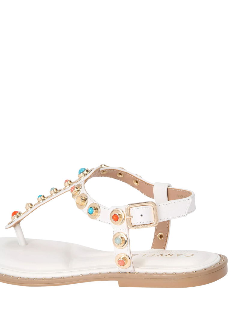 Amalfi Leather Embellished T-Bar Flat Sandals, White