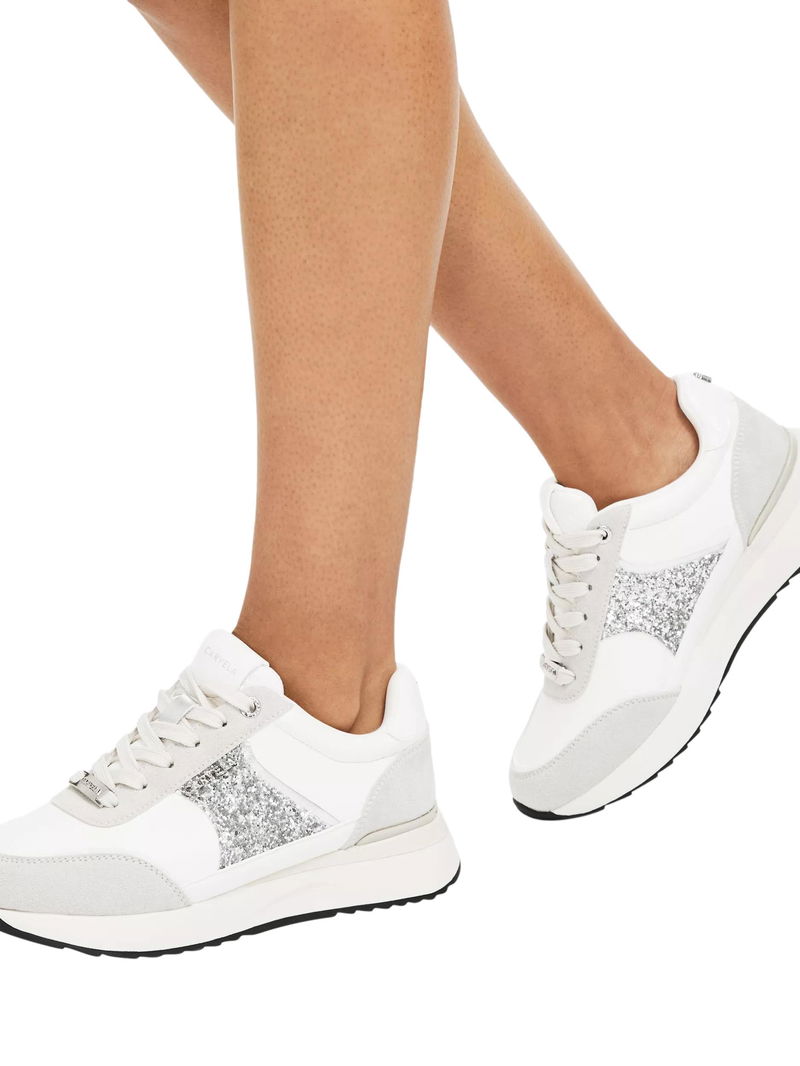 Angelina Embellished Lace Up Trainers, Silver