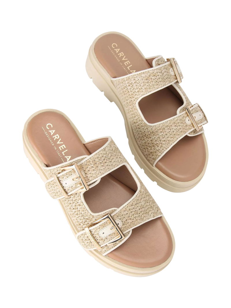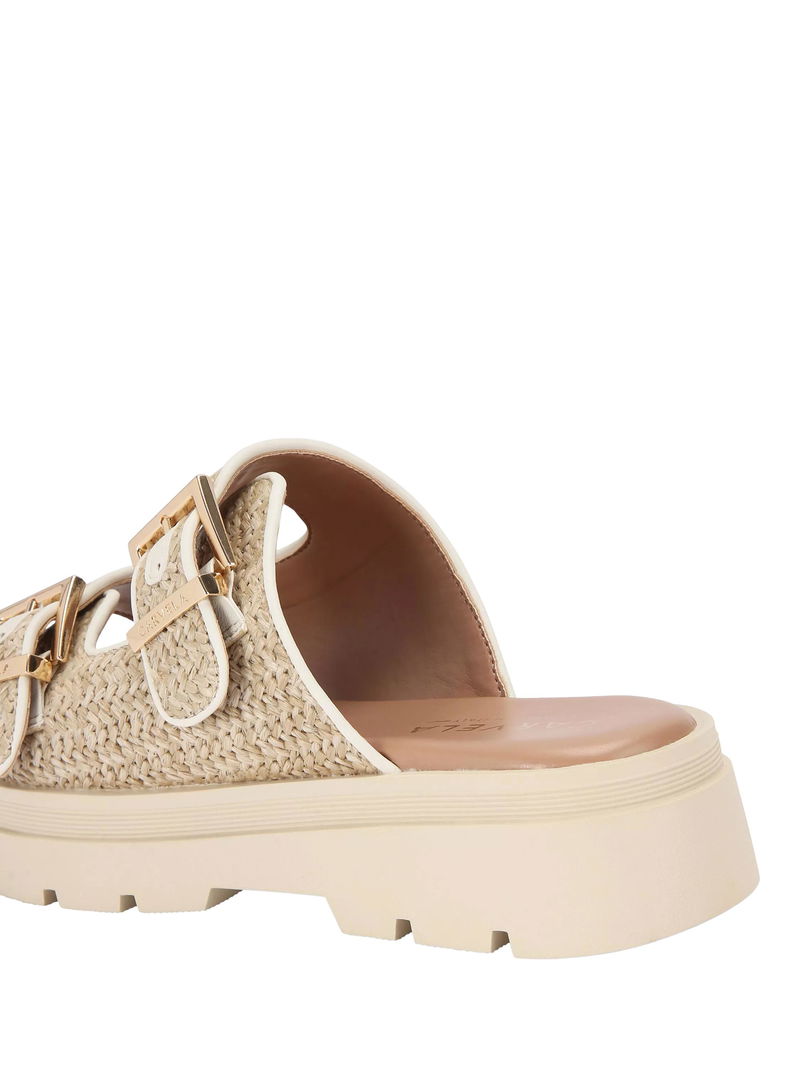 Bormio Buckle Sandals, Beige Combination