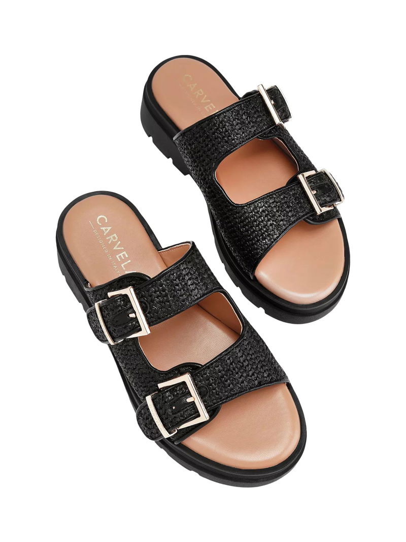 Bormio Buckle Sandals, Black