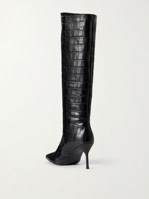 Pulling up to the knee in a style that's destined to be noticed, this pair of boots by Carvela have stylish half croc-effect, half smooth faux leather uppers. Elevated on a block heel, they pair well with jeans and nice tops for effortless smart-casual ensembles.