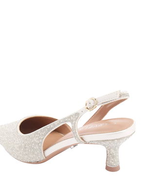 Add some sparkle to your occasion outfit with these embellished Chiara court shoes from Cavela. These classic slingbacks feature a beaded and crystal design, completed with a mid-height stiletto heel and a buckled ankle strap.