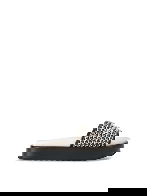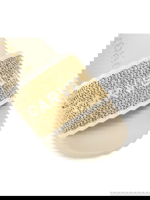 From Carvela, these Estella flatform sliders are presented with a metallic fabric upper embellished with bronze crystals across the wide strap.