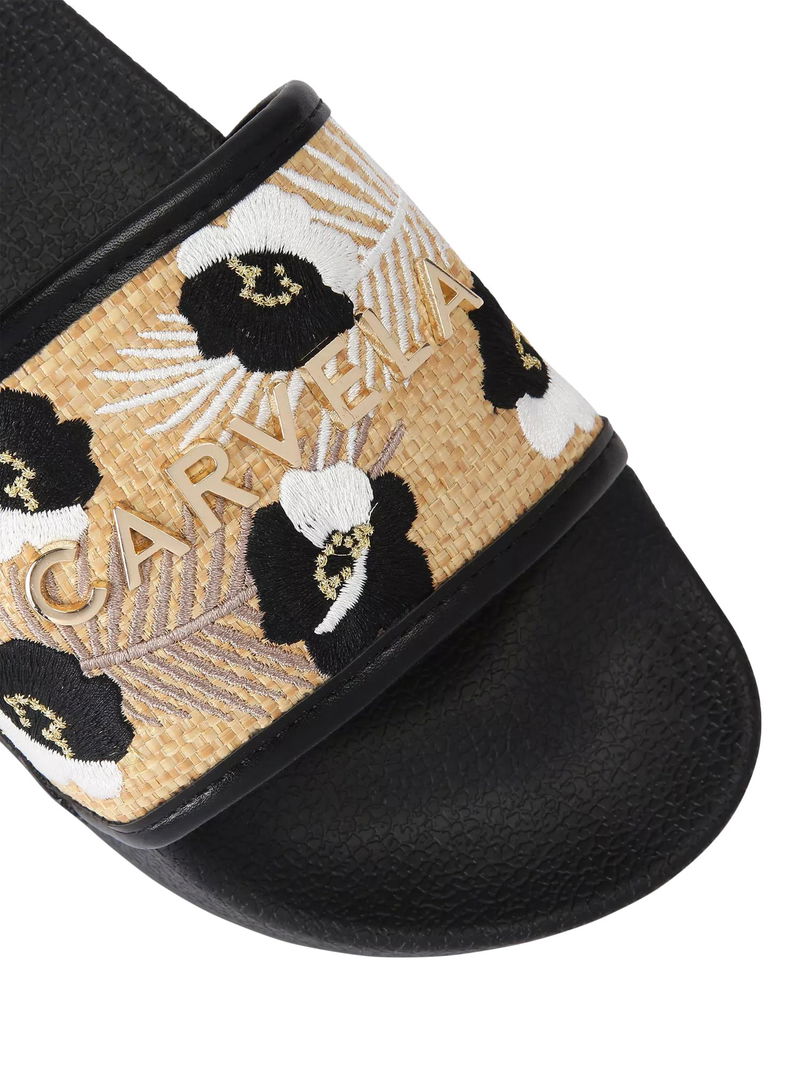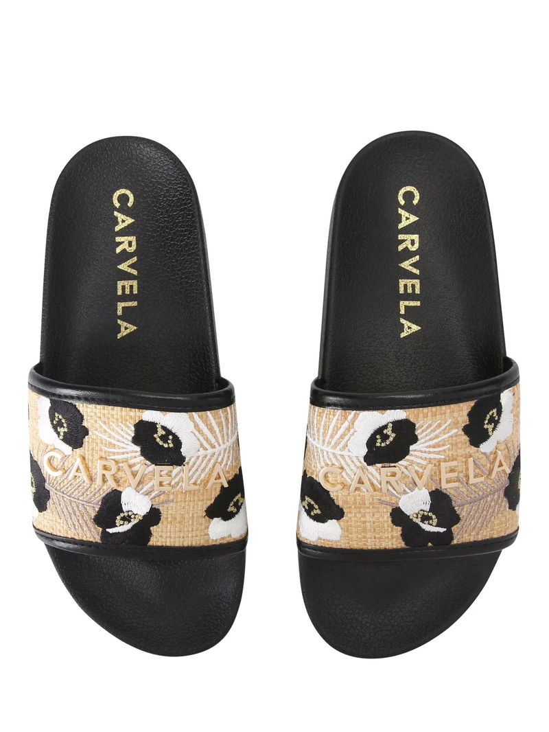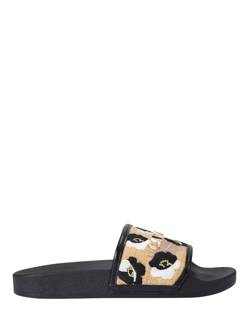 Giorgia Flower Slider Sandals, Black/Multi