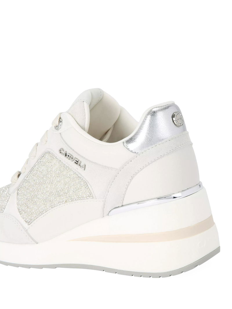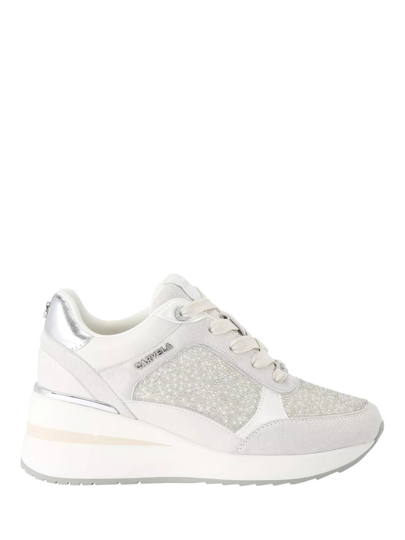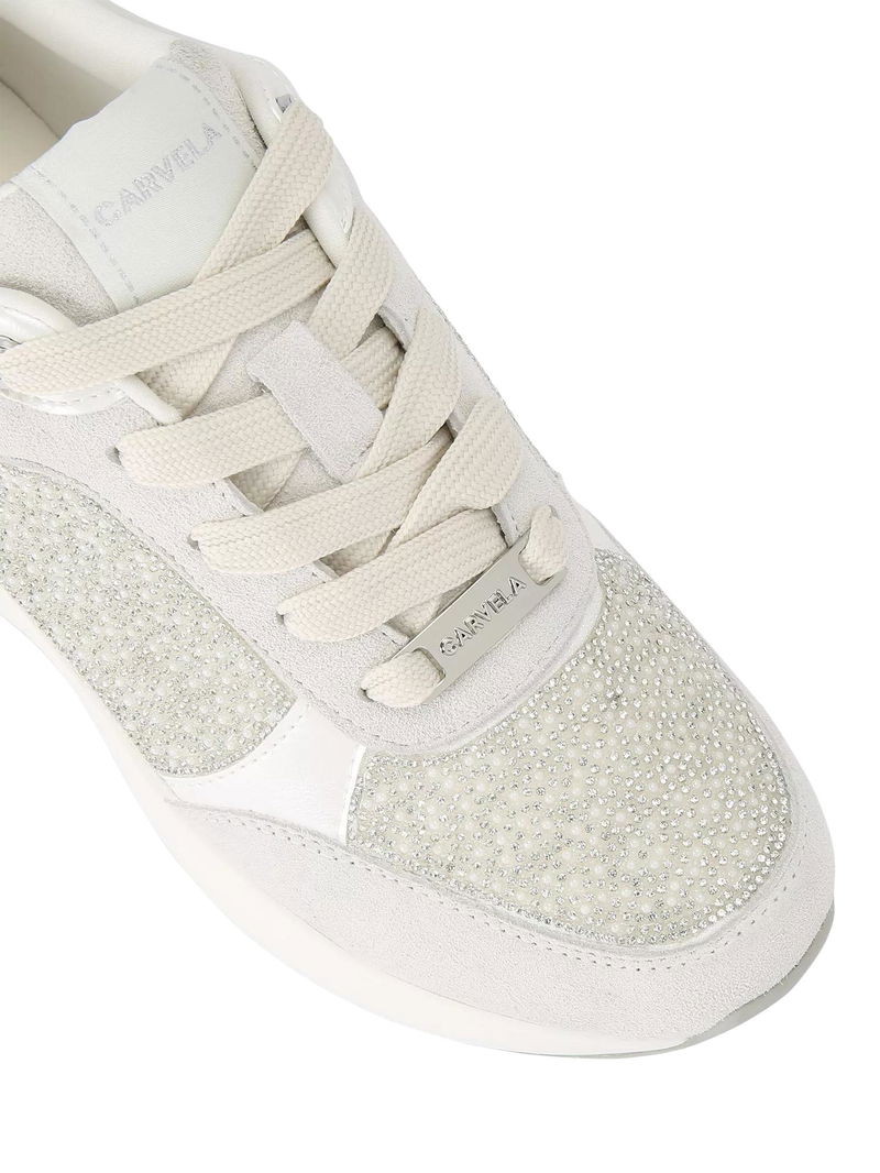 High Rise Pearl Embellished Trainers, White