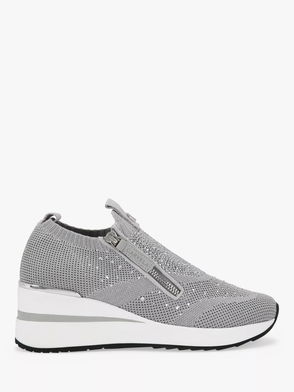 The Carvela Janeiro Zip Runner is a lace up trainer in silver with lizard embossed panels across the upper. The back of the ankle features a silver Icon C stud.