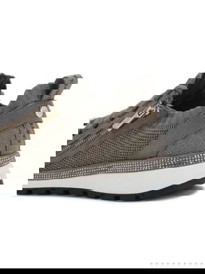 The Carvela Junior Zip trainer features a black upper with black crystal embellishment. There is a gunmetal zip detail at the eyestay and black Icon C rubber logo on the tongue. The back of the ankle is embellished with crystals and features an Icon C metal stud.