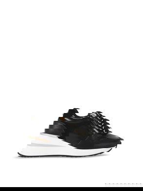 Carvela takes a confident approach to the stretch-knit trainer in the new Link Air Bubble design. With a fuss-free upper in black with mixed textures, this contemporary shoe is set on the season's essential outsole which incorporates bubbled inserts that add acres of style as well as adding cushioning comfort to every step.
