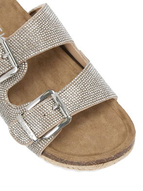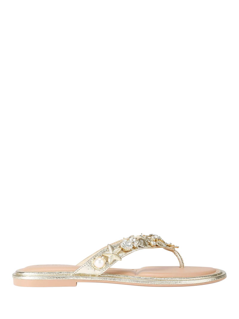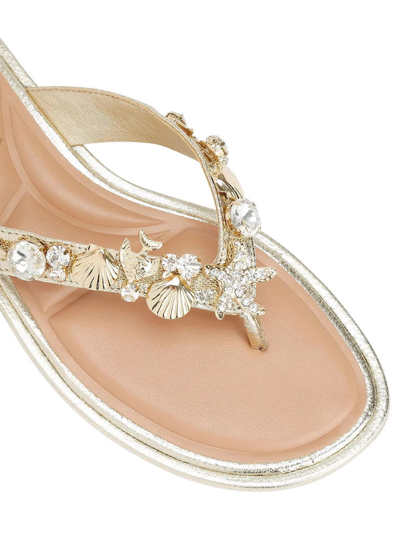 Marina Embellished Open Toe Flat Sandals, Gold