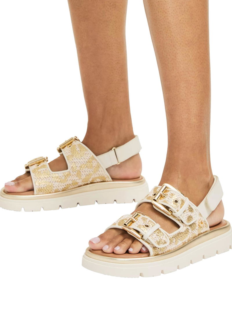Pavilion Slingback Double Buckle Sandals, Gold