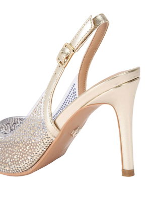 A pair of Carvela slingback sandals, featuring playful daisy embellished mesh and a striking stiletto heel. The pointed toe adds a clever finish, keeping you comfortable and confident from one memorable moment to the next.