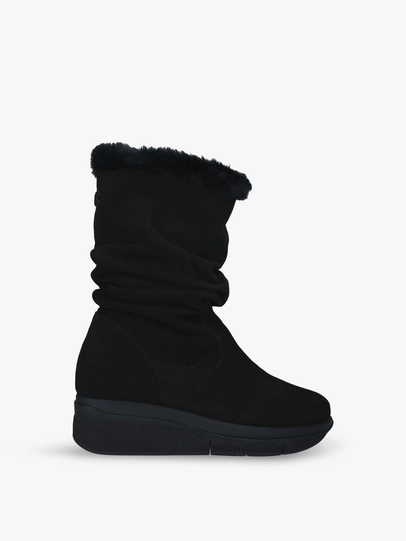 With a black suede upper, the Raise Wedge Knee Boots use Carvela's comfort technology with a padded and moulded insole for all day wearability. The inside is lined in black faux fur with a small 'C' stud logo on the back of the ankle.