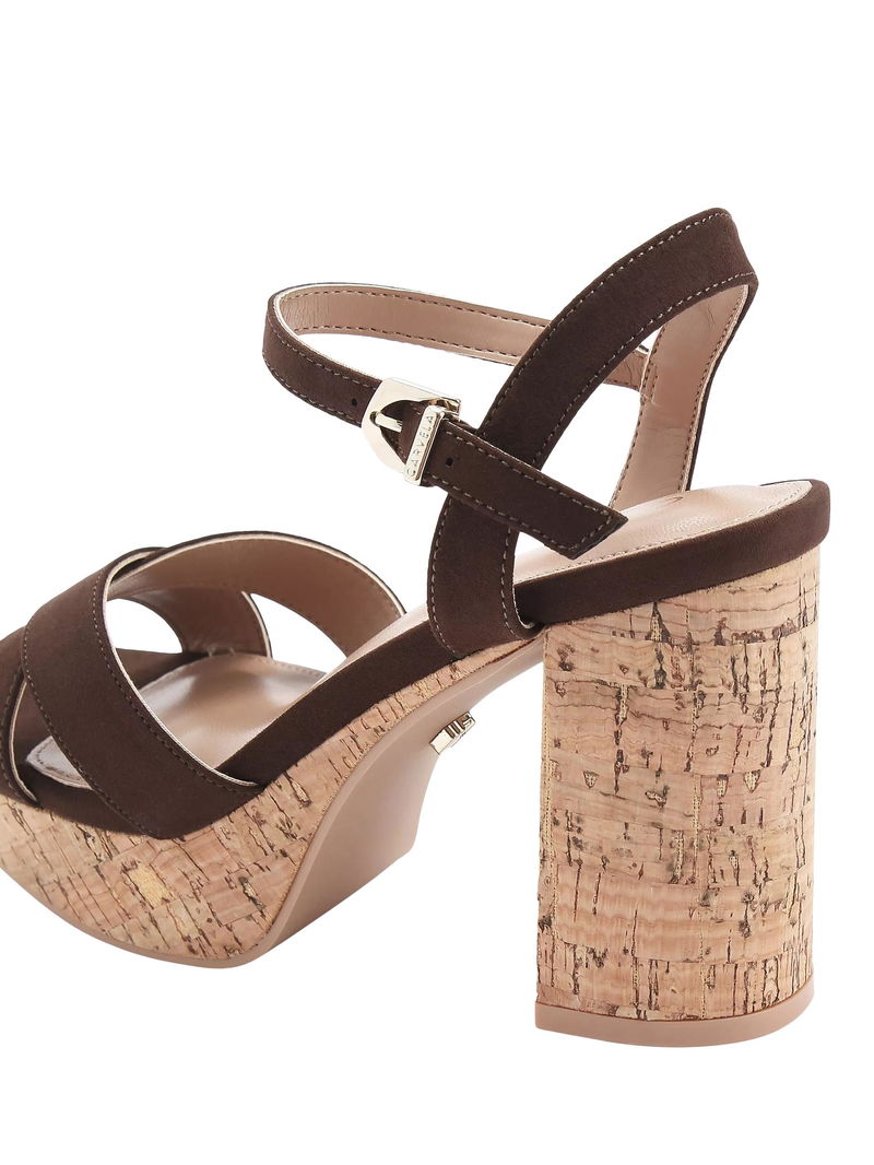 Sonata Cork High Heel Strappy Sandals, Brown
