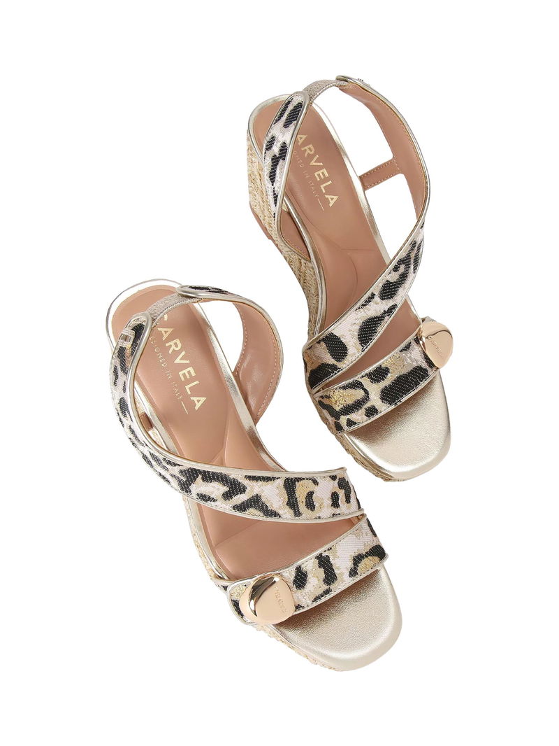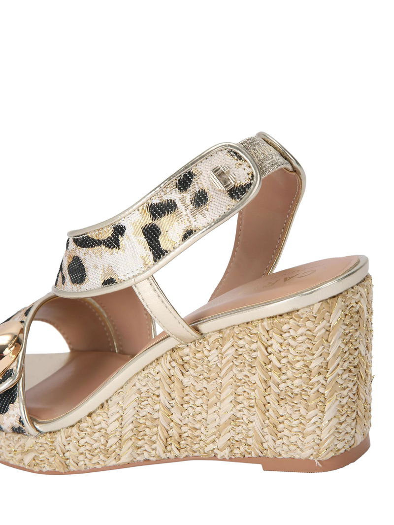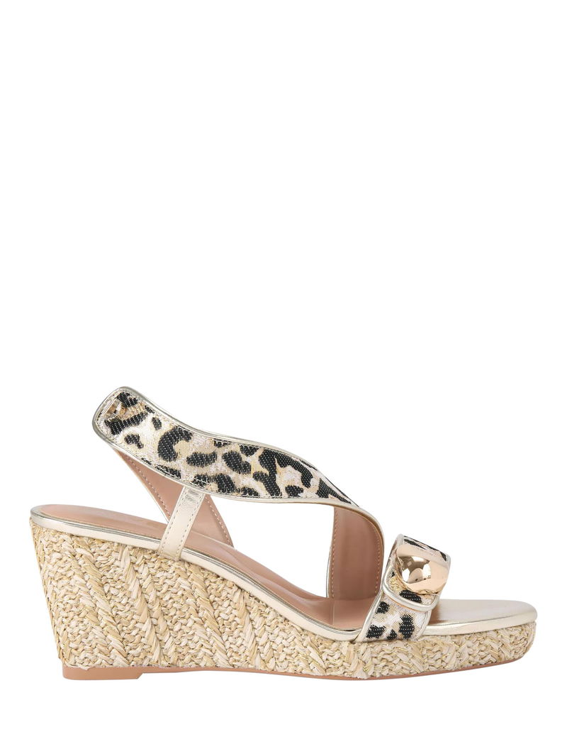 Sorano Leopard Print Wedge Heel Espadrille Sandals, Gold