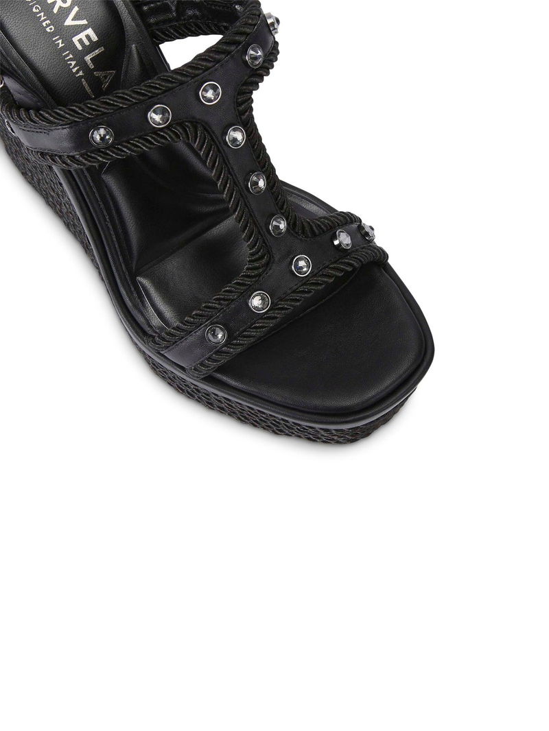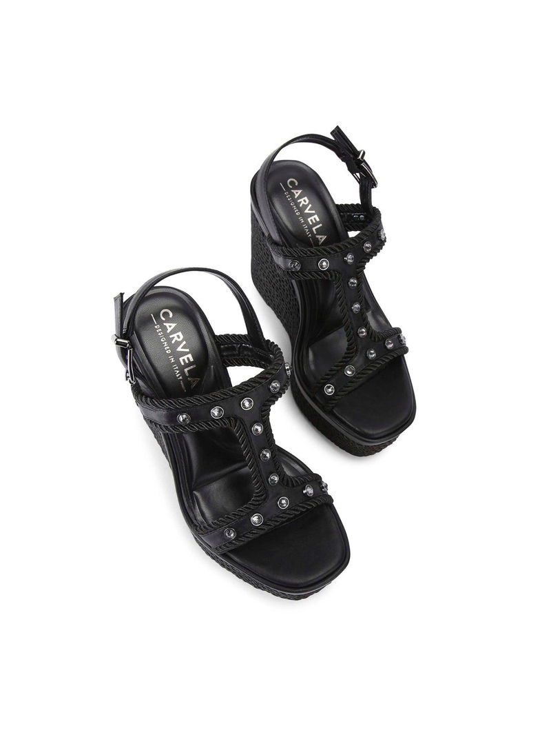 The Sorella Black Wedge by Carvela offers a stylish and comfortable option for those seeking a versatile wedge shoe. Featuring a sleek black design, these wedges provide added height while maintaining stability and support. Ideal for both casual and dressier occasions, they combine fashion with practicality for everyday wear.