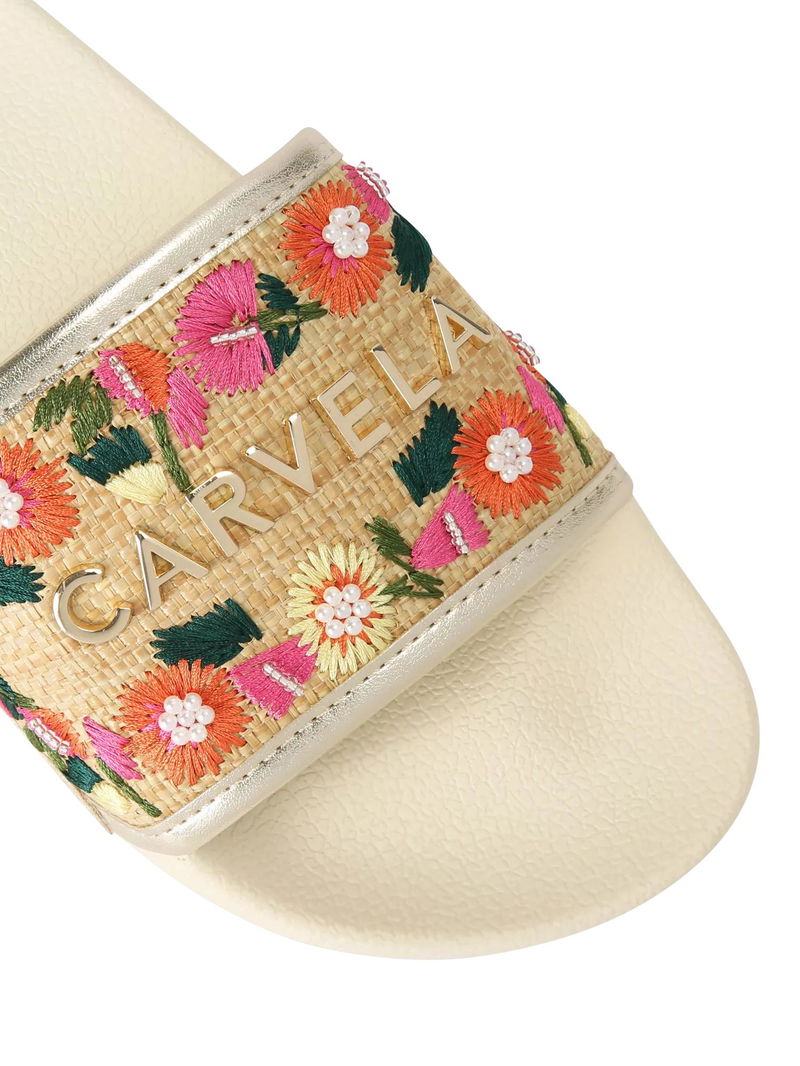 Sorrento Embroidered Floral Slider Sandals, Multi