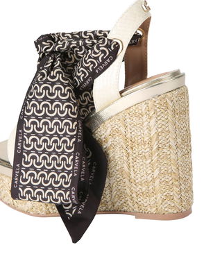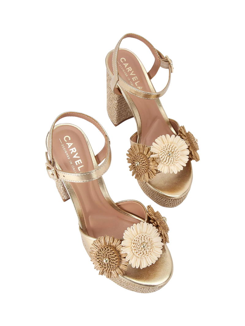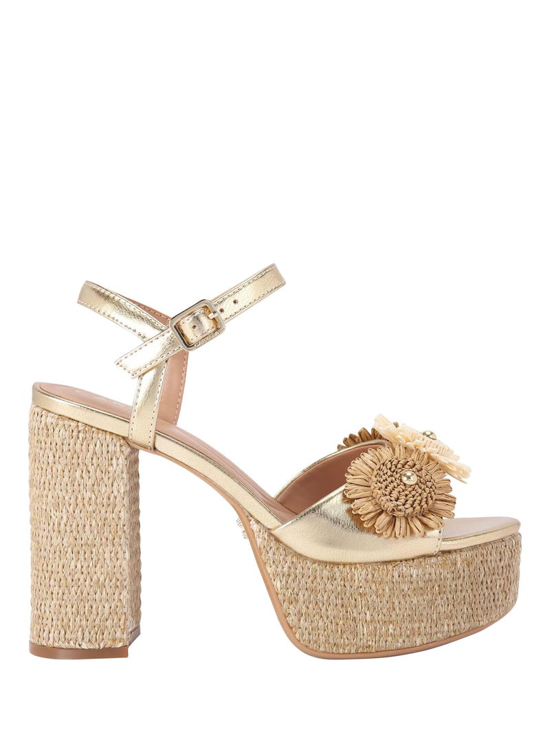Sorrento Flower Platform Heel Sandals, Gold