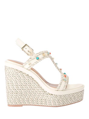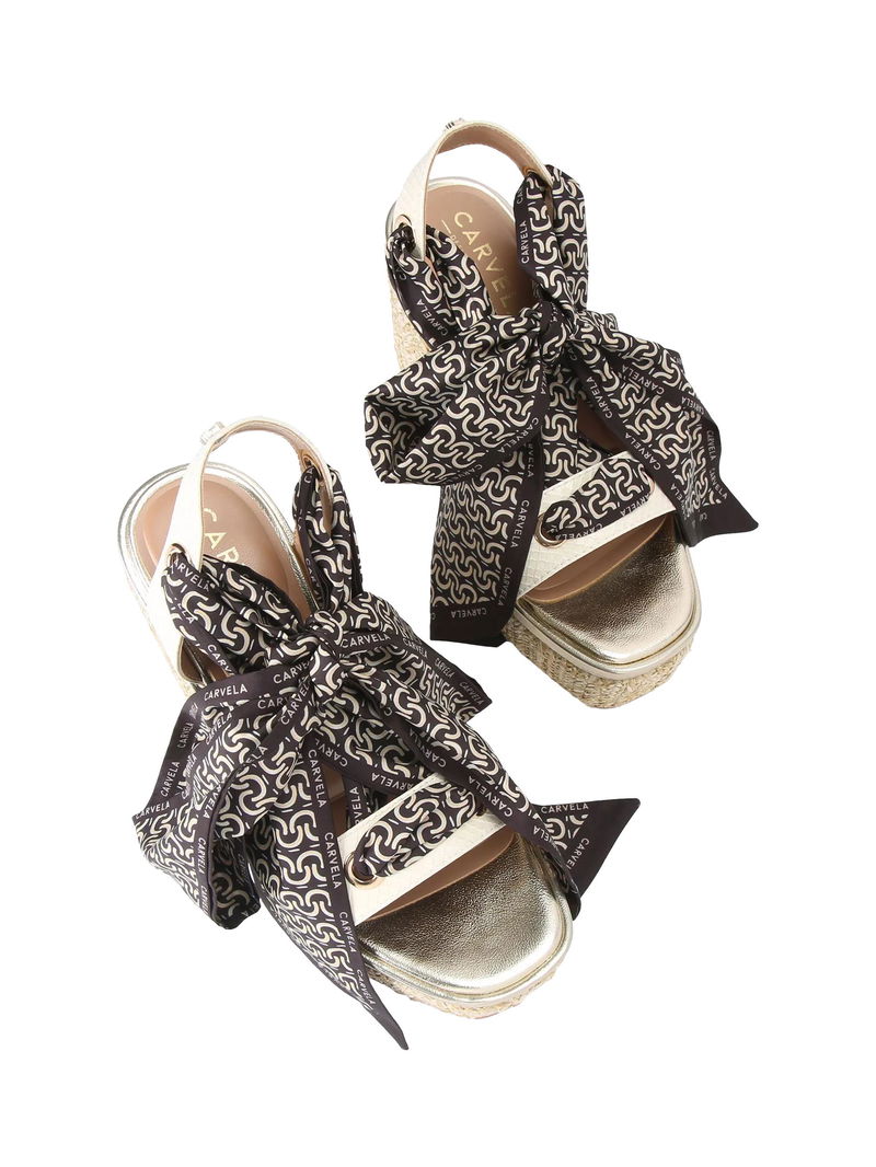 Sorrento Scarf Wedge Sandals, Natural Putty
