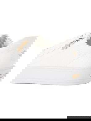 This Carvela Statement Zip trainer features a white lizard embossed upper with statement zip at the eyestay. There is gold tone hardware across the upper.