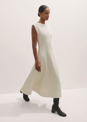 Look to Cecilie Bahnsen for elegant summer styles such as this yellow Bethany midi dress from the exclusive summer capsule. Made from floral jacquard, it has a relaxed silhouette with slender shoulder straps and an off-the-shoulder neckline.