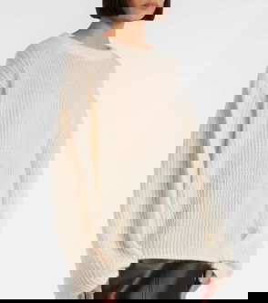 The patch, open-gauge knit composition of this ivory mohair-blend sweater nods to Cecilie Bahnsen's exploration of irregular shapes and texture.