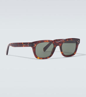 From Celine Eyeware, these black acetate sunglasses are built in a classic rectangular shape. Distinguished by logo-embossed temples and tinted smoke lenses, these sunglasses also come with a branded leather case.