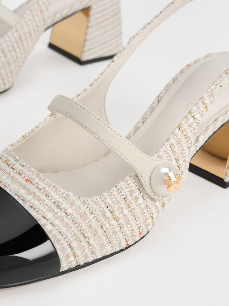Aeryn Tweed Pearl-Embellished Slingback Pumps