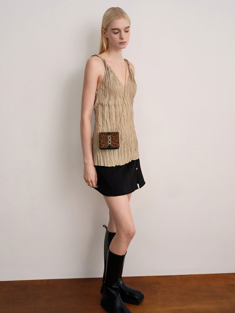 Agatha Leopard-Print Chain-Accent Card Holder