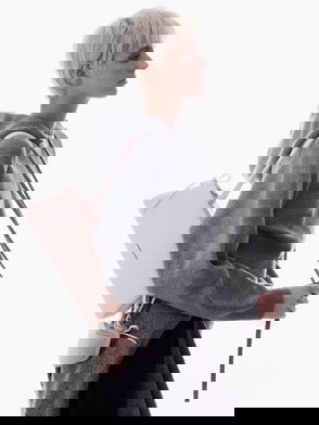 This Allyn tote bag in taupe features a structured trapeze silhouette, double handles and a sleek, minimalist design. Style it with neutral-toned tailored outfits for a polished and sophisticated workwear look.
