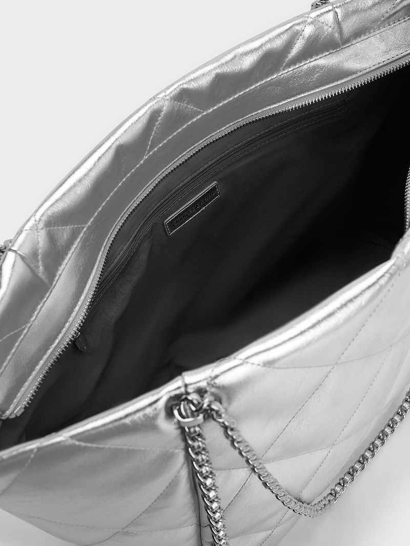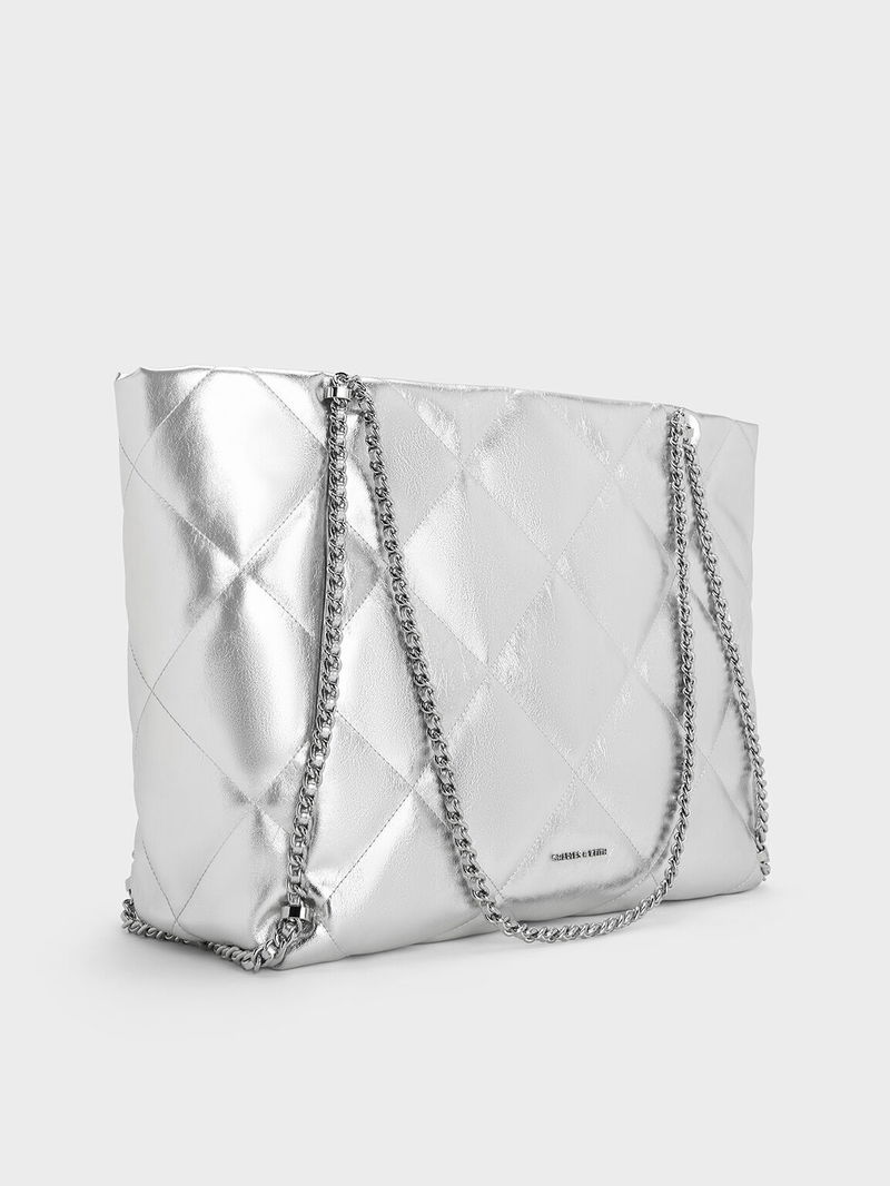 Apfra Metallic Quilted Chain-Embellished Tote Bag