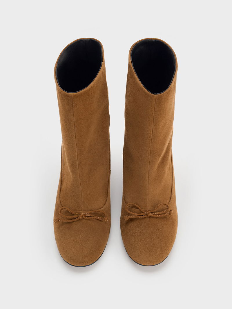 Aretha Suede Bow Kitten-Heel Calf Boots