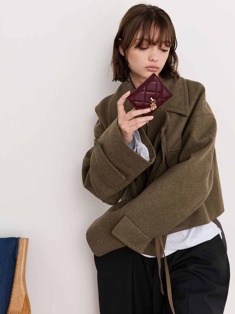 Arrietty Quilted Bow-Heart Charm Curved-Flap Wallet