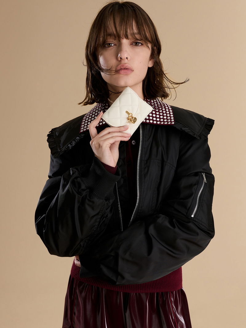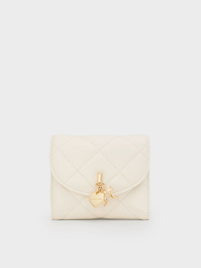 Arrietty Quilted Bow-Heart Charm Curved-Flap Wallet