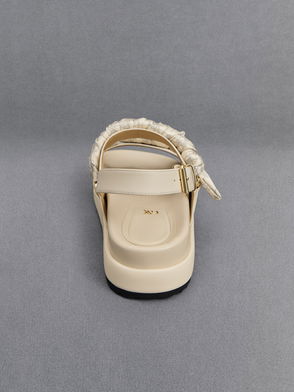 Show off your fresh pedicure against this ivory white pair. Wear these asymmetric strap heeled sandals with cropped trousers for a casual, yet chic look. Throw a boho bag to the mix for maximum impact.