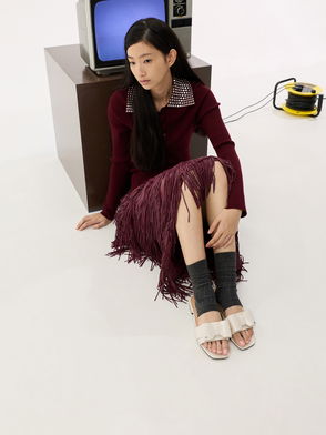 A pop of colour for special occasions. These gem-embellished sandals will add a royal finish to a long, satin skirt.