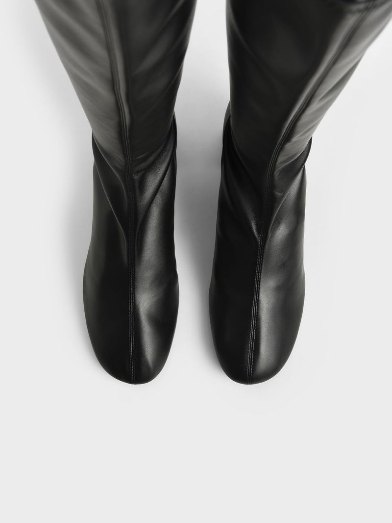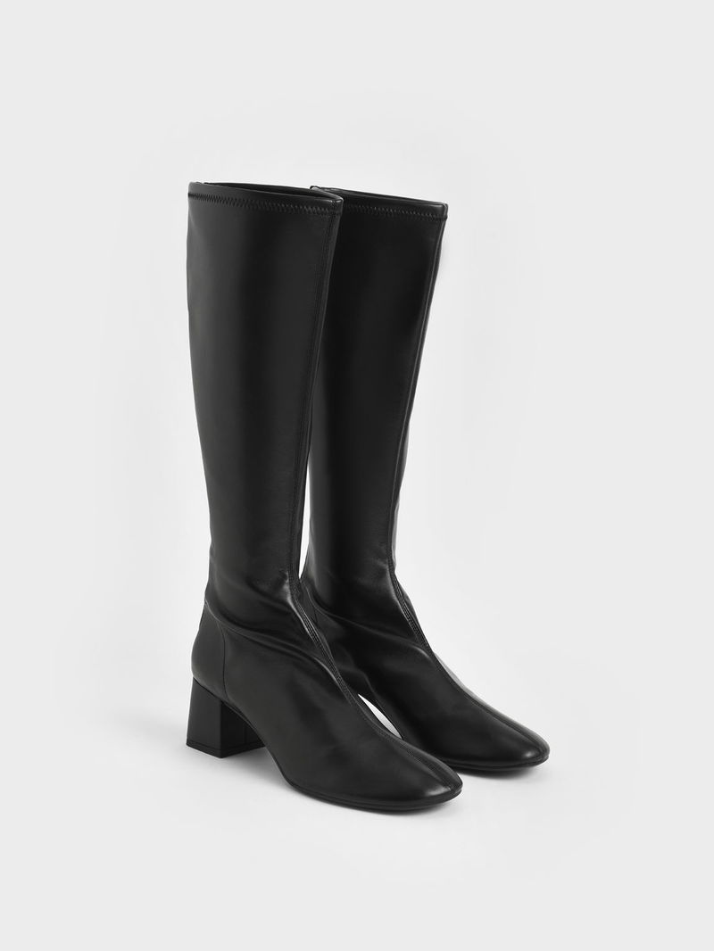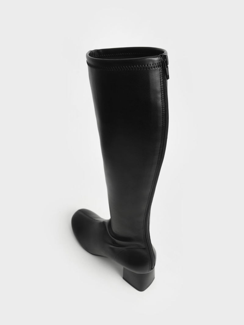 Every woman needs a pair of knee length boots, and these could be yours. Featuring a rounded toe and a classic black shade, these are the versatile everyday boots of your dreams. Universally flattering and endlessly wearable, this pair also sports an edgy 5.5cm block heel and a back zip. Match them with a jumper and denim skirt, plus a hobo bag for a casual yet bold look.