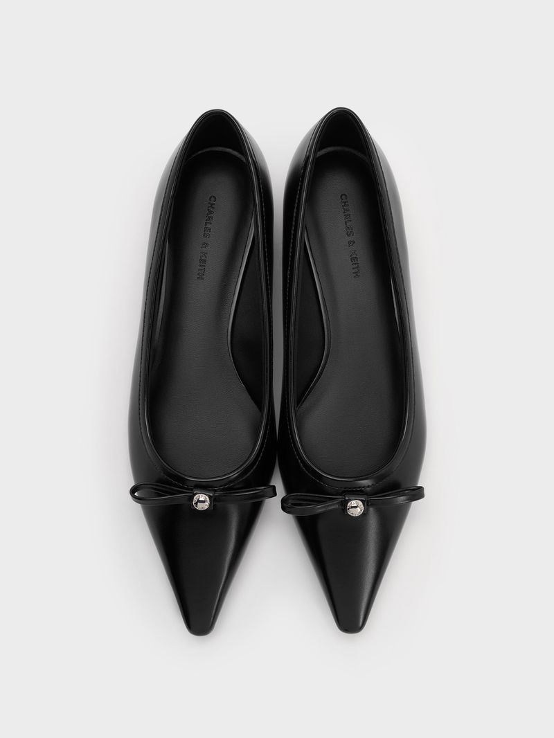 Bow Metallic-Accent Pointed-Toe Ballet Flats