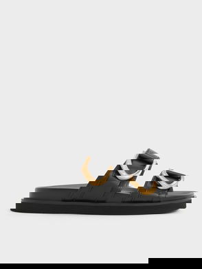 Sliders so sleek they become part of your outfit. Throw in a statement heel and these sandals add a stylish touch to a tee and mini skirt ensemble.