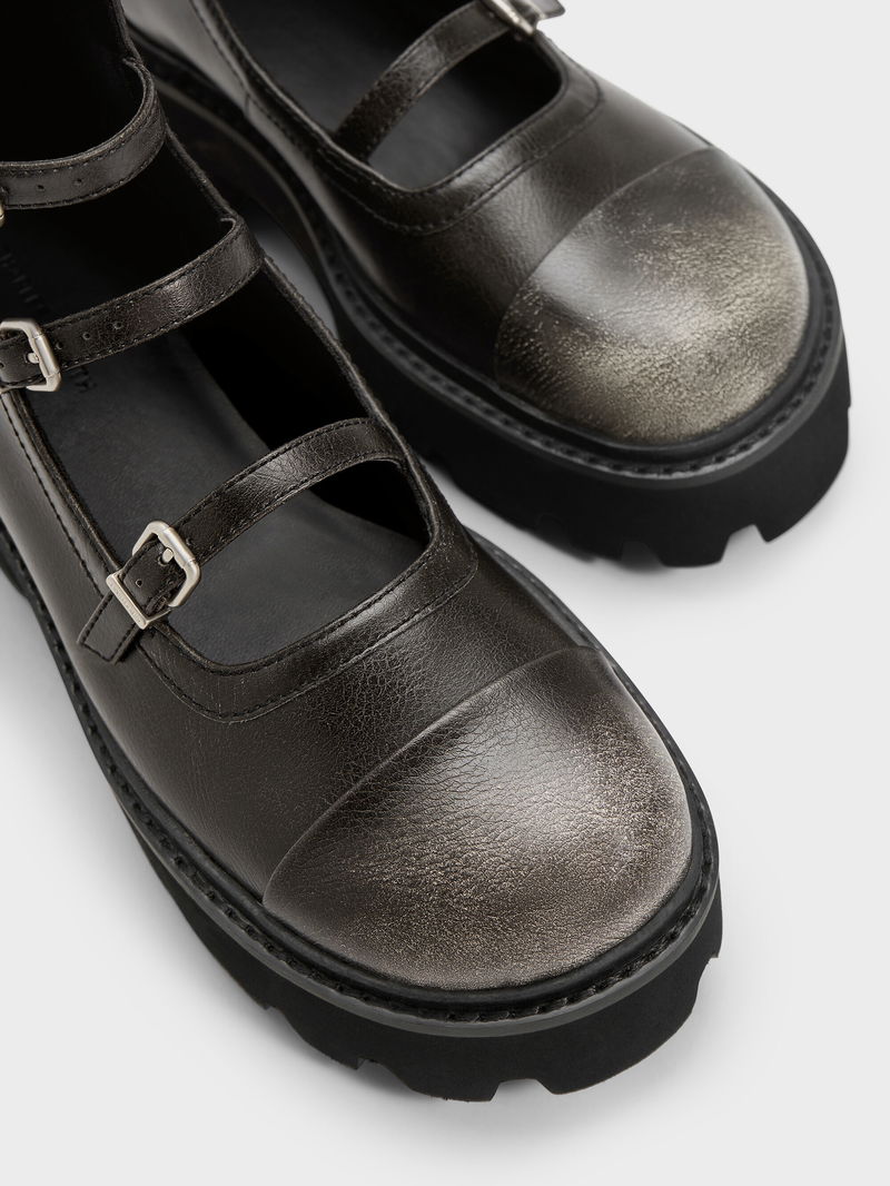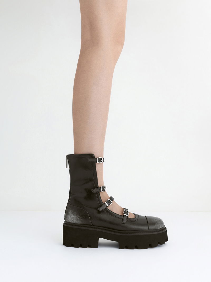 Celia Burnished Buckled Multi-Strap Chunky Calf Boots