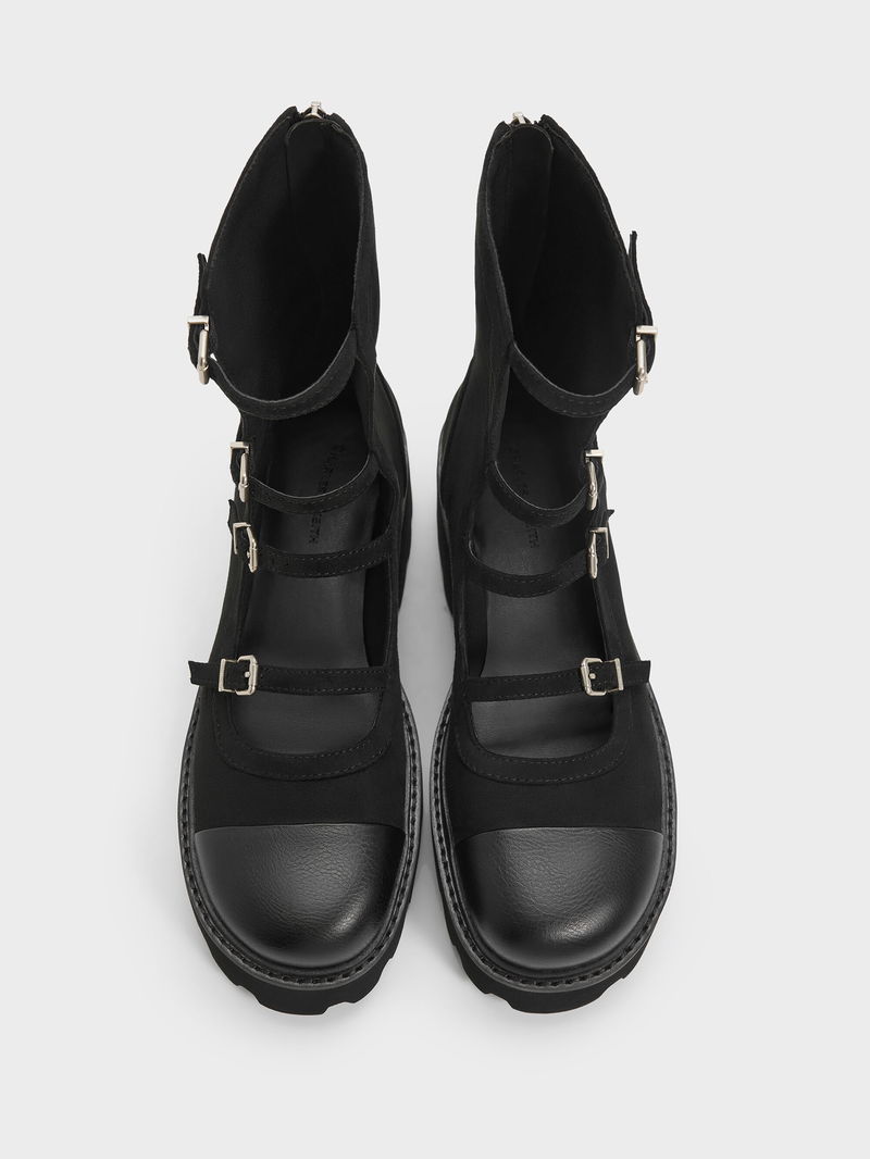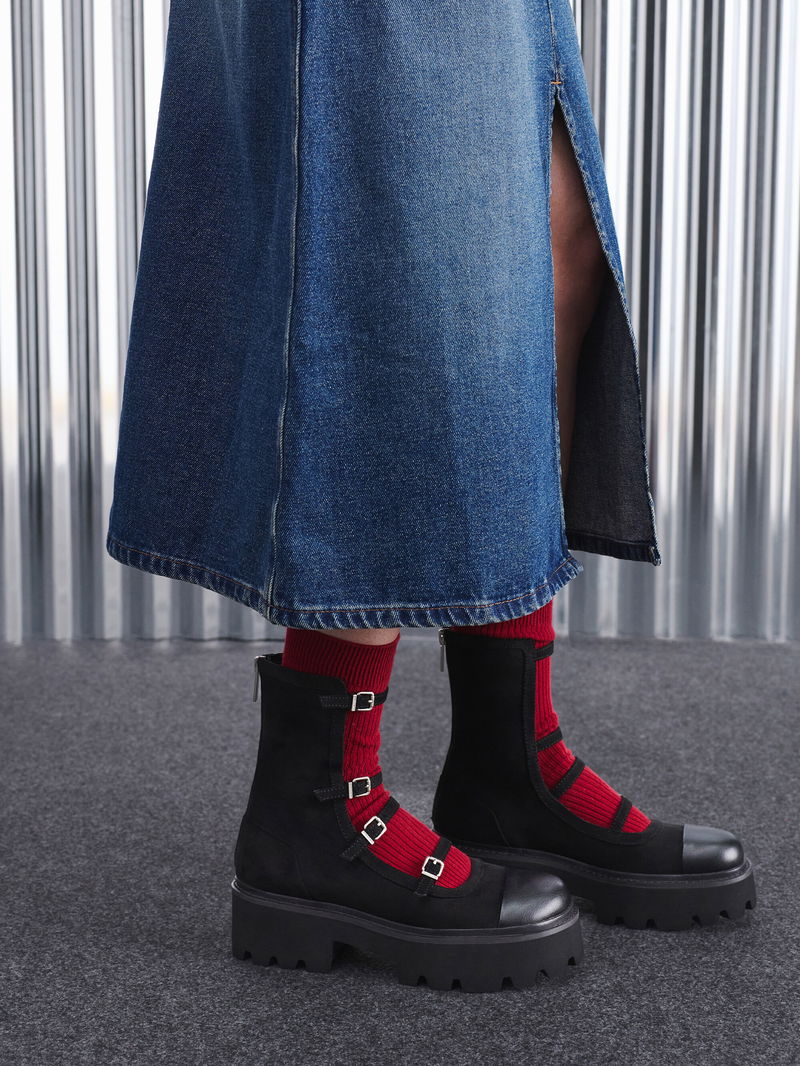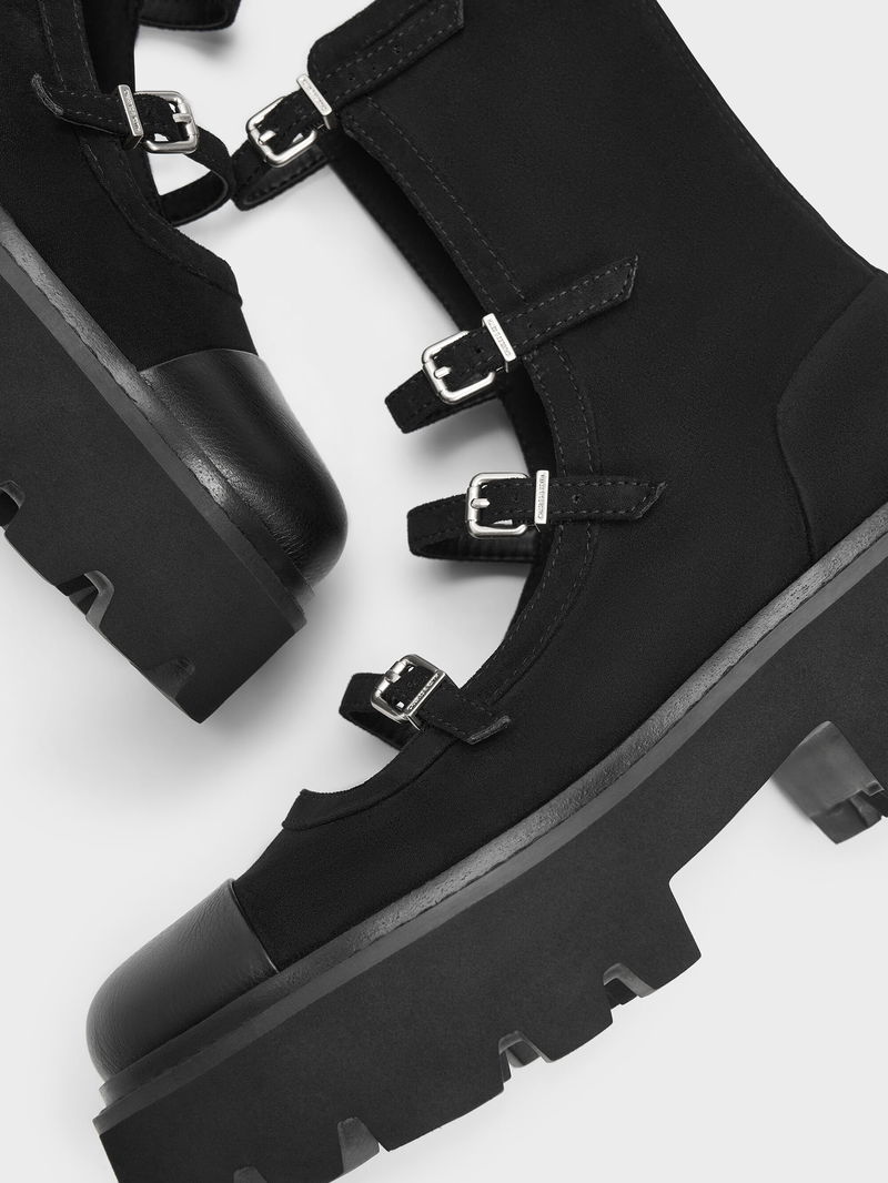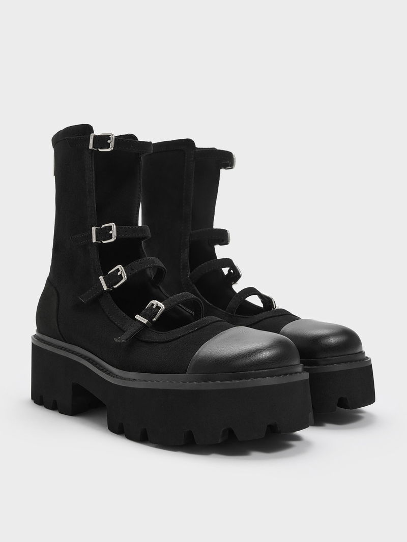 Celia Faux Suede Buckled Multi-Strap Chunky Calf Boots