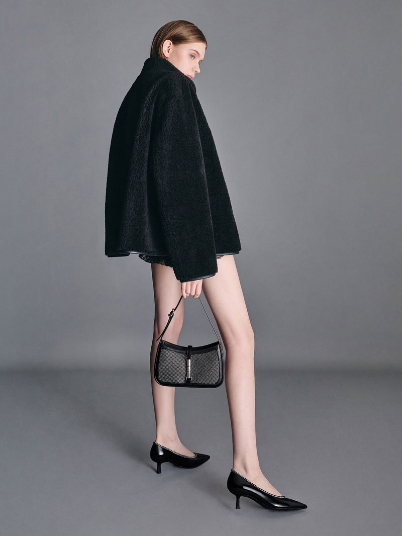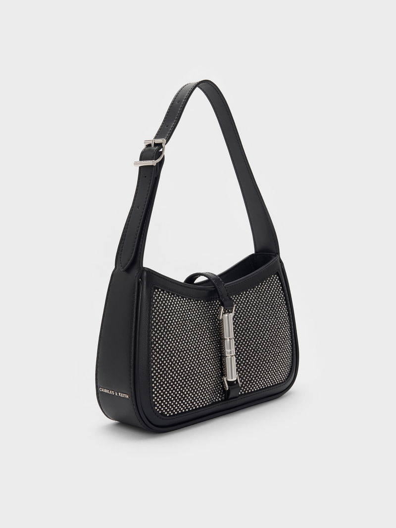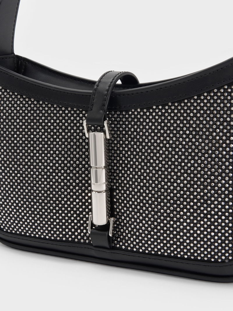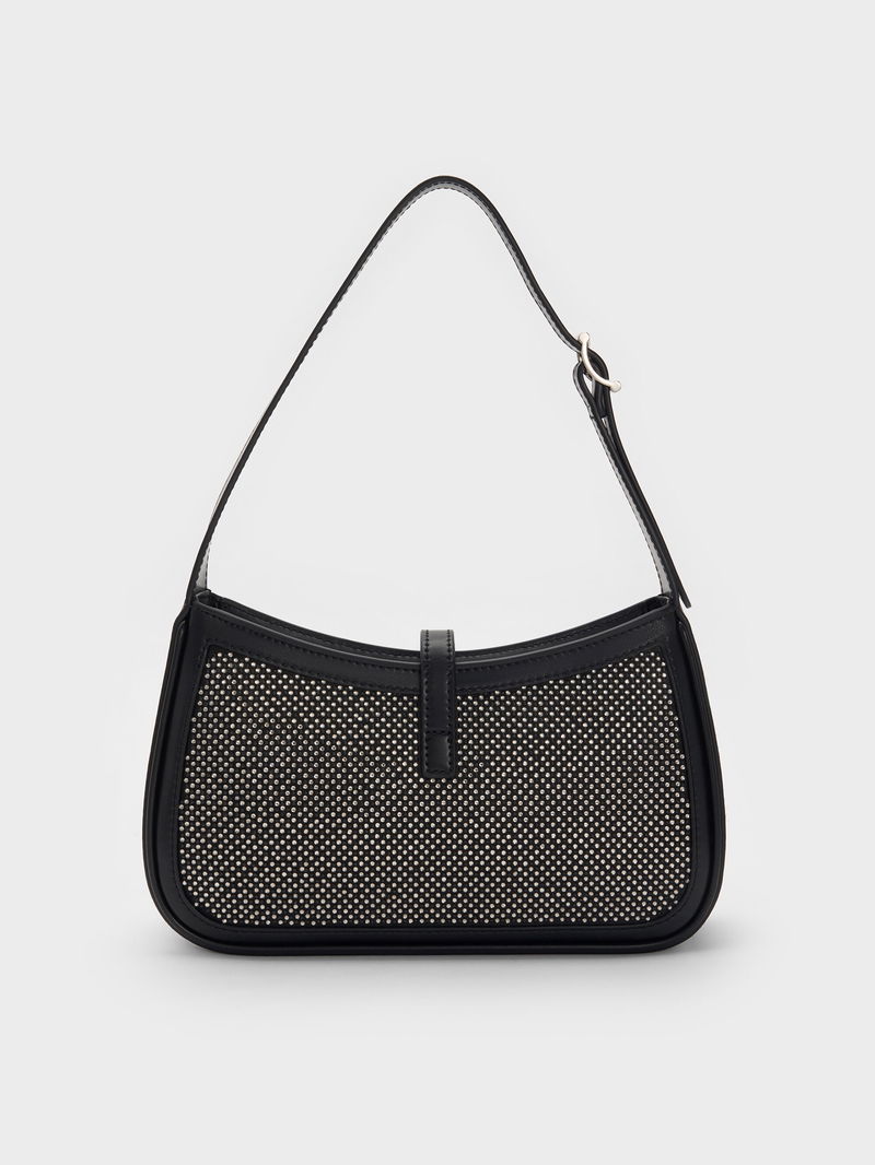Cesia Satin Crystal-Embellished Metallic-Accent Shoulder Bag