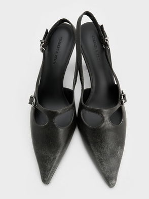 Exude confidence with every step you take in these trendy t-bar Mary Janes – perfect for days when you need to give a simple outfit a quick style boost. Featuring an edgy gold-tone chain-link embellishment (which can be removed when needed) and a shiny black finish, these contemporary shoes will make any outfit look sharp and polished. We recommend styling them with a puff-sleeve blouse, tailored shorts, and a bucket bag for a refreshing look.