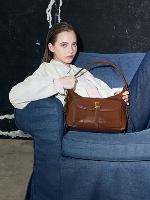 Edgy enough to switch up your style in a jiffy. Carry this sleek black chunky buckle angular bag by its nifty top handle or use the detachable strap to sling it over a flare dress to add some structure to a soft silhouette.