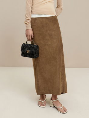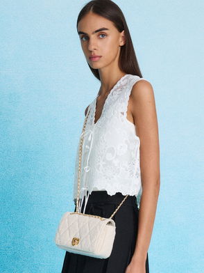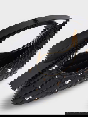 Lean into the tweed trend with this gorgeous navy-blue number. The bucket bag silhouette will not just earn you points for looks, it also offers enough space to keep all your essentials close by. Plus, the drawstring closure promises easy access in and out. Not that you need any more reasons to fall in love with this bag, but the chunky chain handle ( which can be worn long or short) should seal the deal nicely. Dress for success, and style it with a puff-sleeve top, tailored pants, and loafer mules.