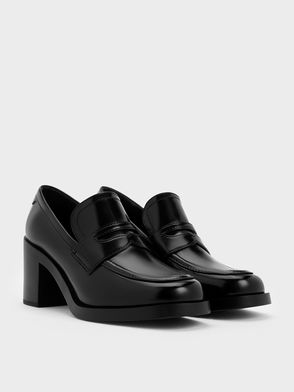 Uplift your weekday wardrobe with these stunning penny loafers. Whilst the covered almond toe brings an air of sophistication, the cleated block heel and raised sole serve up some trendy modern style. To make things easy for you to match, they come rendered in a pure chalk-white hue, ready to give any outfit an edgy contrast. Style them with an indigo dyed shirt, denim shorts, and a trapeze bag for a cool-casual look.